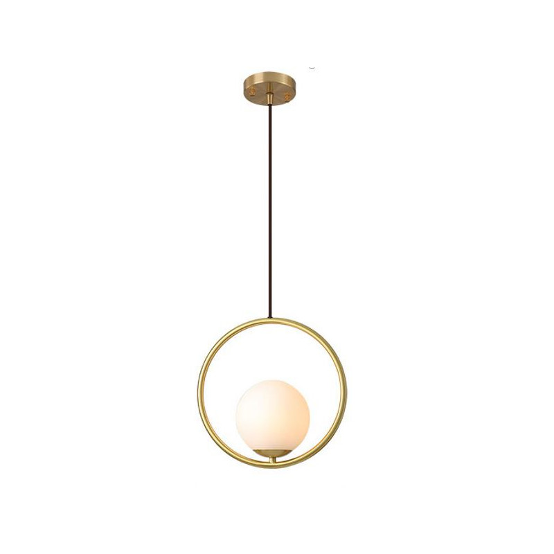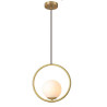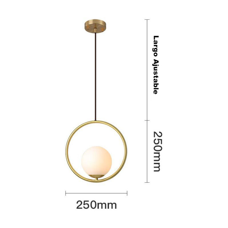 Colgante código 153, Metal dorado & Vidrio 12 cms satinado, 1 luz E27, ancho aro 25 cms, bajada 80 cms ajustable