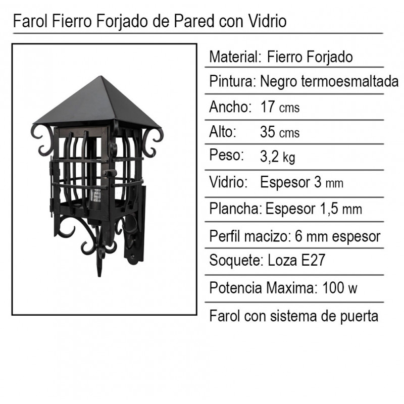 farol colonial mini de pared, altura 37 cms, ancho 17 cms color negro