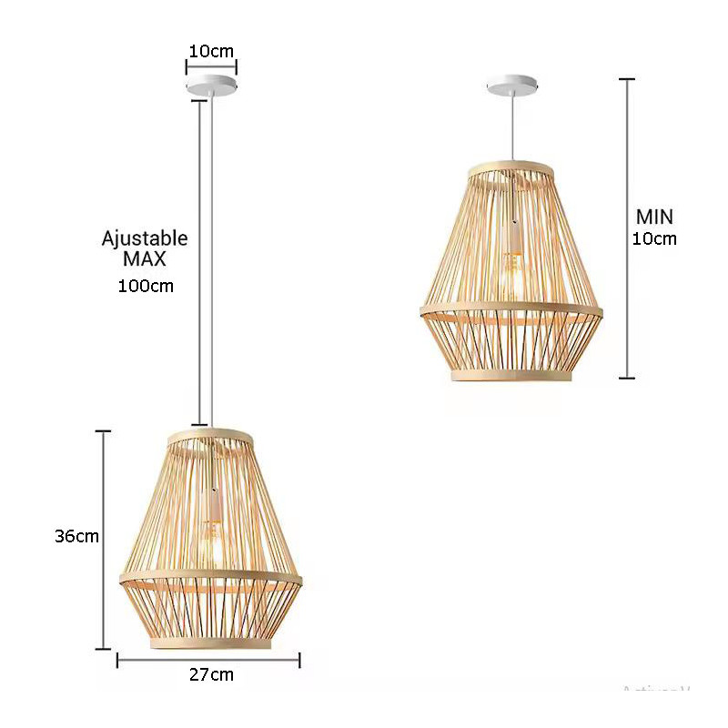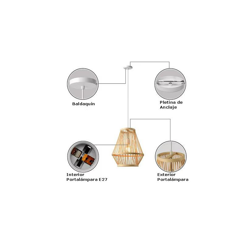 Lámpara de mimbre 27 cm ancho x 36 cm altura, 1 luz E27