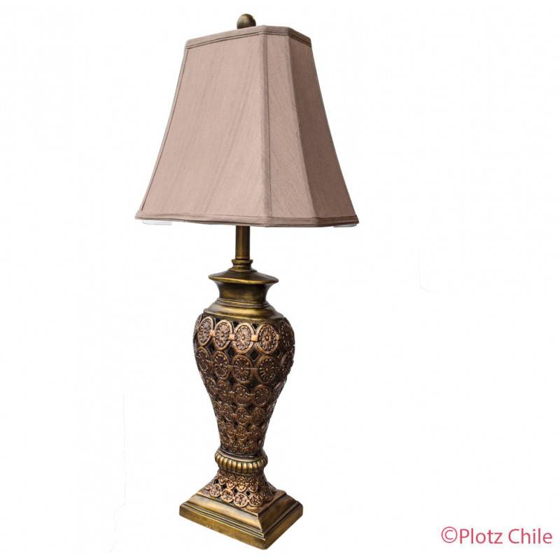 Hermosa sobremesa con diseño calado, material poliresina y pantalla de género. medidas 70 cms de alto x 35 cms de ancho en su pantalla